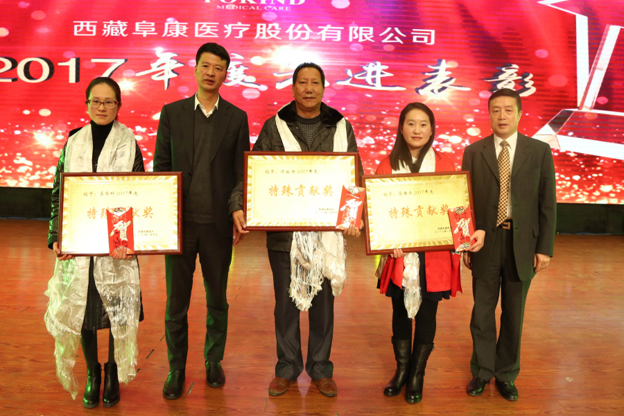 2018年1月10日,西藏阜康醫(yī)療股份有限公司新年團拜會在拉薩洲際酒店舉行,下午四點來自西藏阜康醫(yī)院、婦產(chǎn)兒童分院、心腦血管分院、健康體檢中心、阜康大藥房、超市的員工陸續(xù)來到會場。下午五點,主持人劉連福院長宣布會議正式開始,場內(nèi)音樂響起,董事長王斌帶領(lǐng)醫(yī)院領(lǐng)導(dǎo)和特邀嘉賓入場,會場立刻響起雷鳴般的掌聲和歡呼聲。