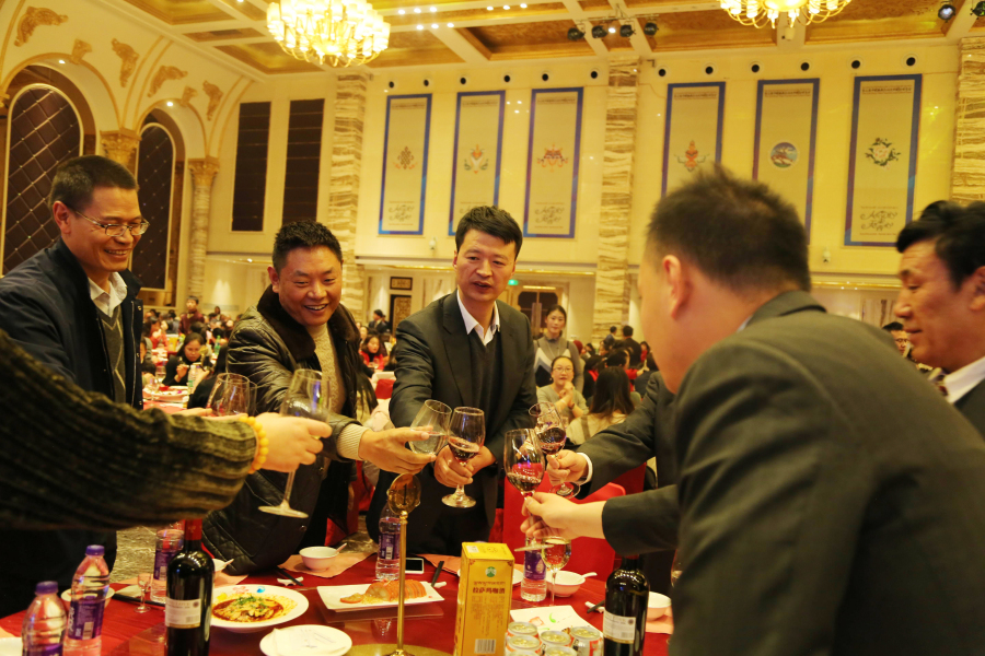 晚宴尾聲,董事長王斌邀請所有院級領(lǐng)導(dǎo)上臺共同舉杯說:"希望大家在新的一年繼續(xù)沿著創(chuàng)新的道路團結(jié)一致、規(guī)范管理、用心服務(wù),開源節(jié)流地做好自己本職和醫(yī)院的工作。我相信,在各位阜康同仁的共同努力下,2018年我們一定會保質(zhì)、保量完成工作計劃。為保障西藏自治區(qū)廣大人民群眾的身體健康做出新的更大的貢獻,促進醫(yī)院健康、持續(xù)、穩(wěn)步地向前發(fā)展,更上一層樓,再鑄新輝煌! ”