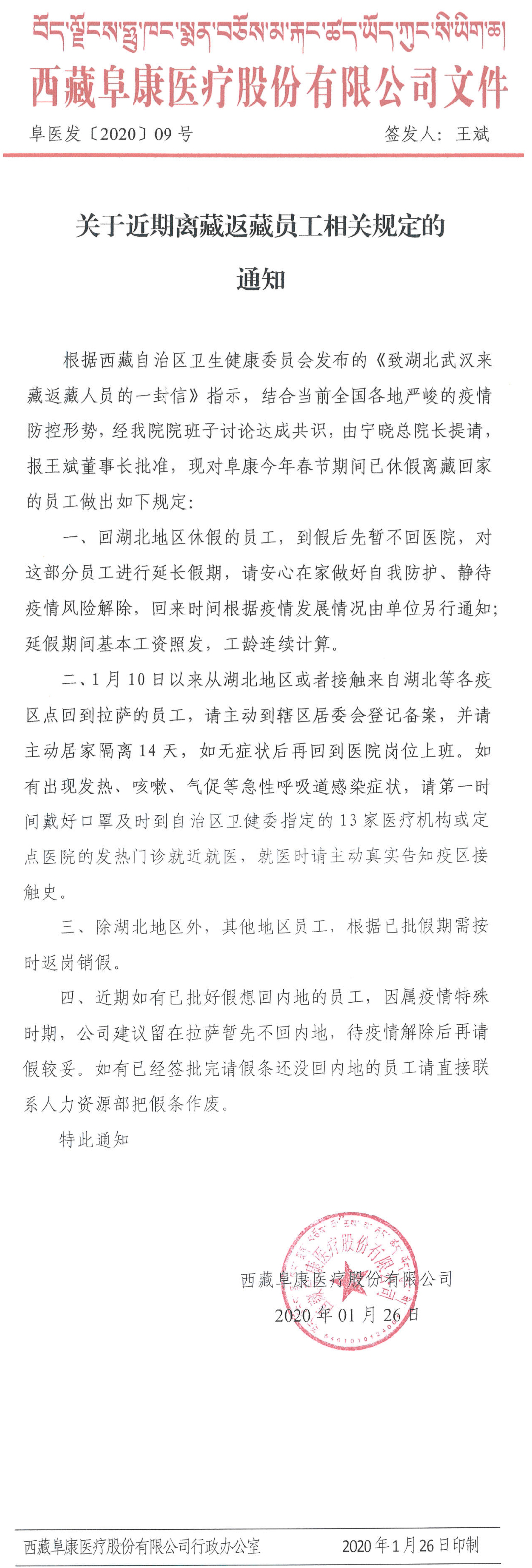 關(guān)于近期離藏返藏員工相關(guān)規(guī)定的通知