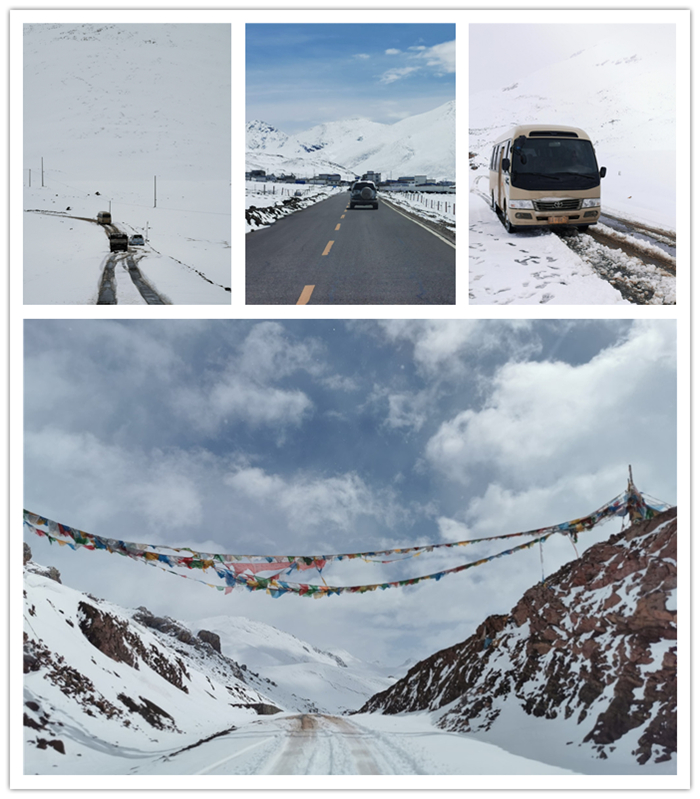 8點(diǎn)30分左右,義診隊(duì)伍到達(dá)當(dāng)雄縣境內(nèi)時(shí)天氣驟變,漫天的飛雪瞬時(shí)將羌塘草原披上了一件銀色外衣,天地間茫茫一片,駕駛員為了保證行車安全,放慢了車速,謹(jǐn)慎駕駛。