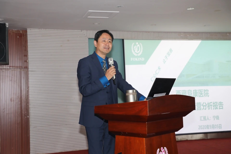 西藏阜康醫(yī)院總院長寧曉從"2020年7月醫(yī)院經(jīng)營收入完成情況”、"2020年7月門急診、住院工作量同期比”、"2020年7月收入增長/下降科室同期對比”、"2020年7月體檢中心二次開發(fā)完成情況”、"2020年7月總收入同、環(huán)對比圖”、"2020年7月運營指標(biāo)同比圖”、"效率指標(biāo):出院患者平均住院日同比圖”、"醫(yī)保使用情況”、"患者來源同期對比”等十個方面對醫(yī)院7月份的運營情況進行了全面分析解讀,對兒科牽頭組織的多學(xué)科會診工作、7月份的醫(yī)保管理工作、以及體檢中心運營管理工作進行了表揚,對全院7月份收入增長9.73%表示滿意。