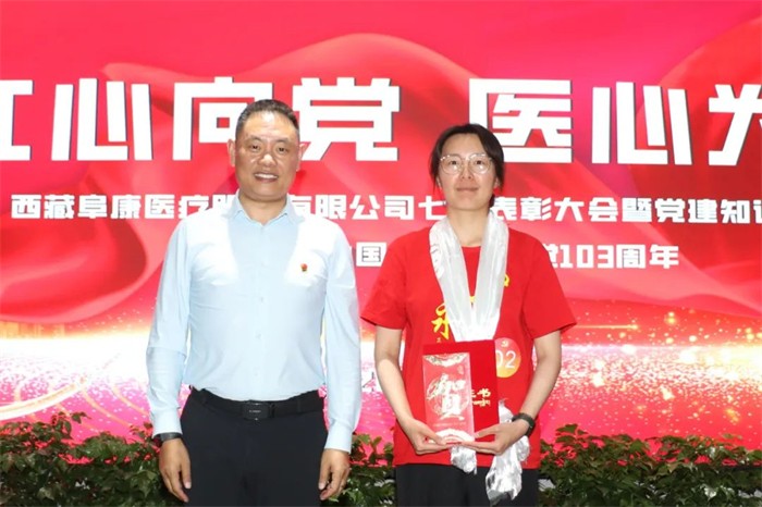 西藏阜康醫(yī)療股份有限公司黨委副書記、紀(jì)委書記、副總經(jīng)理陳彬代表王斌書記、公司黨委以及院領(lǐng)導(dǎo)班子,向全體黨員、預(yù)備黨員以及入黨積極分子致以了誠摯的節(jié)日祝福,并向受到表彰的先進(jìn)集體和個人表示了熱烈的祝賀。他總結(jié)了過去一年在公司黨委正確領(lǐng)導(dǎo)下取得的優(yōu)異成績,同時,提出了三點希望和要求: