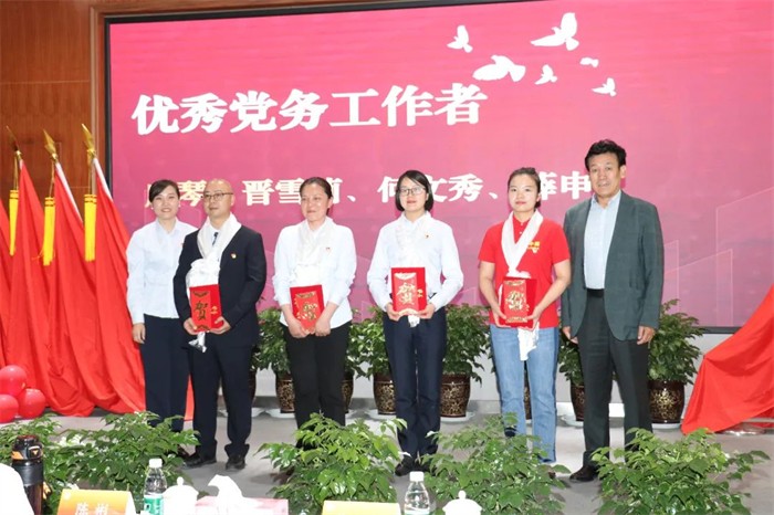 黨委委員李麗宣讀表彰決定:經(jīng)各支部推選,公司黨委會審議決定表彰2個先進(jìn)基層黨組織、4名優(yōu)秀黨務(wù)工作者、8名優(yōu)秀黨員、8名志愿服務(wù)之星,10本優(yōu)秀筆記。